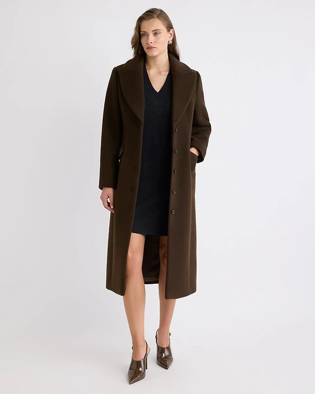 Manteau Long à Coupe Sablier en Mélange de Laine et Cachemire