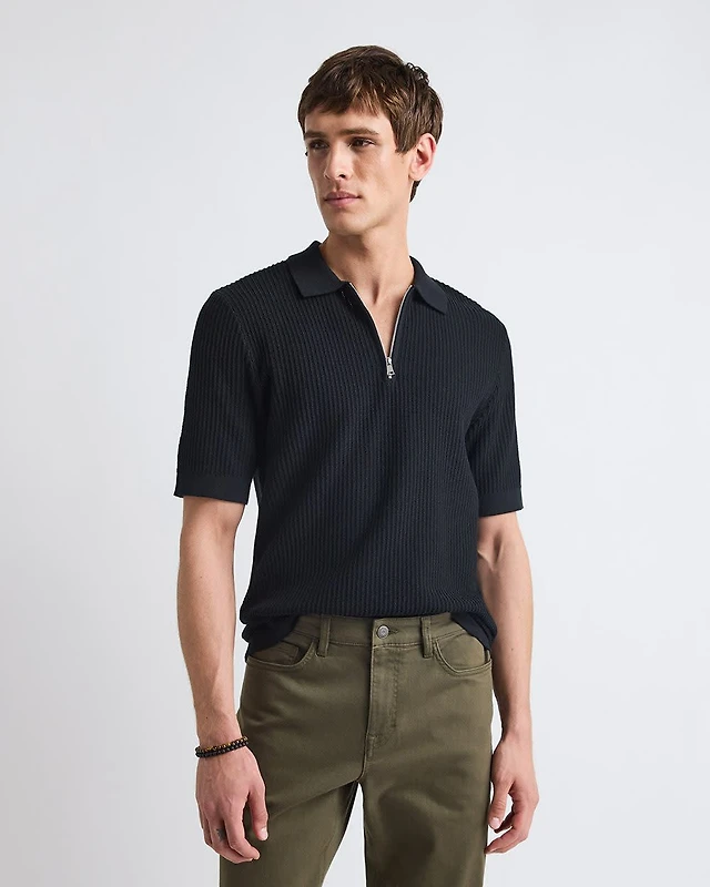Pull à Manches Courtes et Col Johnny Mailles Verticales Deux Tons