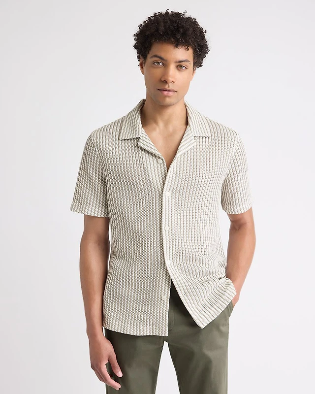 Chemise Rayée en Crochet à Manches Courtes et Col Camp
