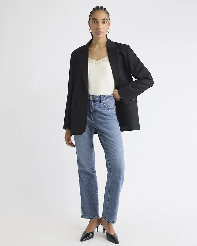 Jeans à Taille Mi-Haute et Jambe Ballon