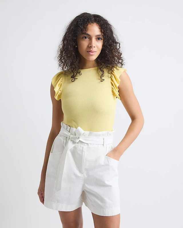 Haut à Col Rond et Manches Courtes Volants