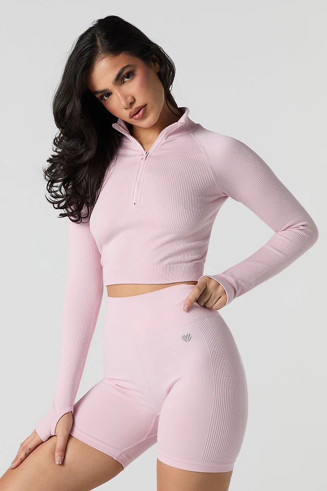 T-shirt ultracourt côtelé sans couture avec encolure carrée