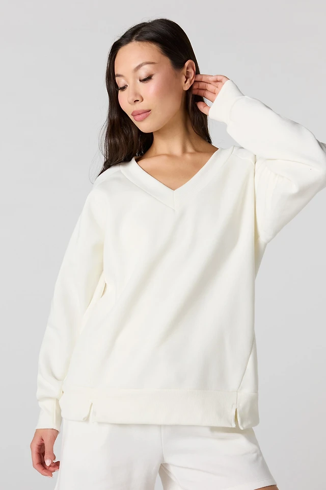 Chandail à épaules dénudées en molleton avec motif brodé Nature