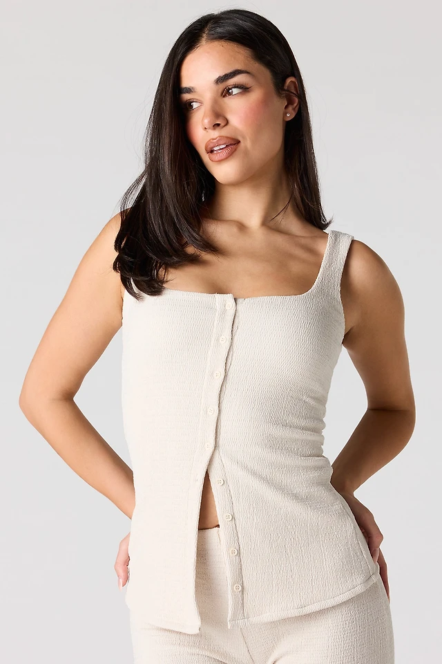 Pantalon à jambe évasée en tricot confortable avec taille boutonnée repliée