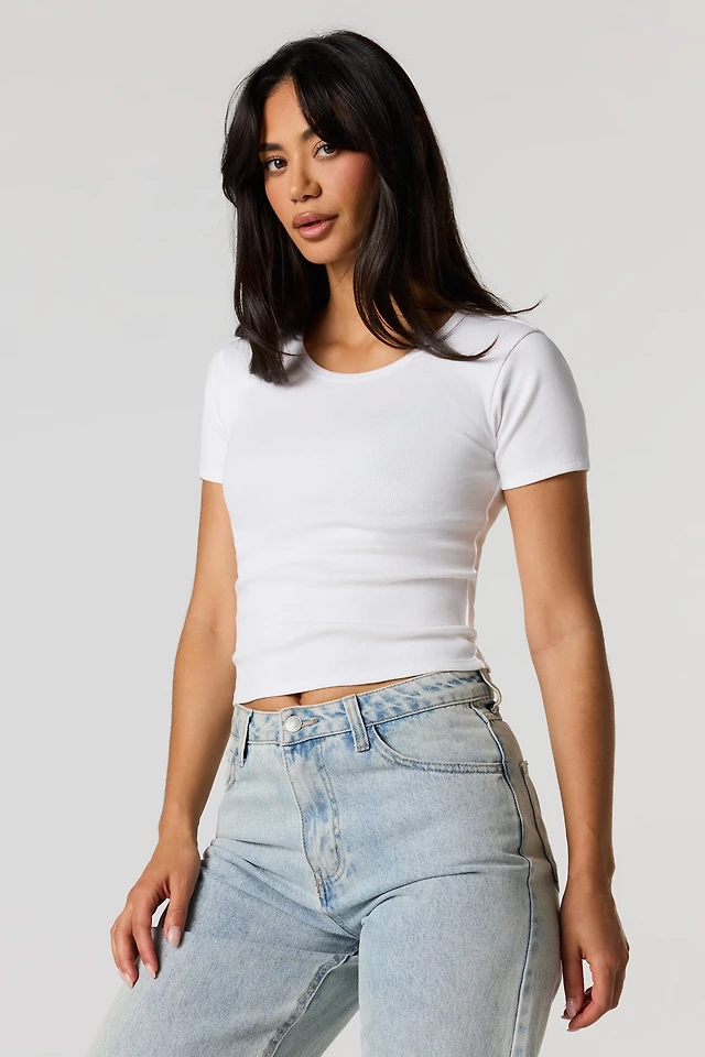Ensemble avec robe-chandail en tricot côtelé et chandail court