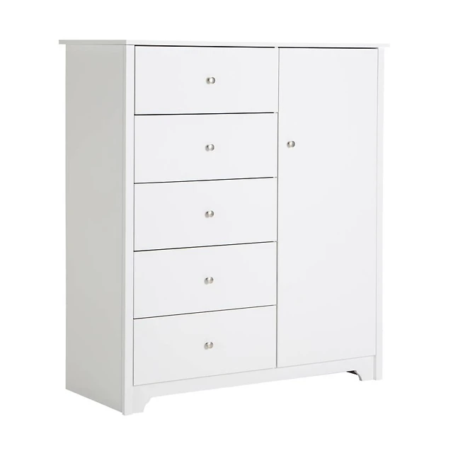 Commode Vito avec Porte et 5 Tiroirs - Blanc Solide