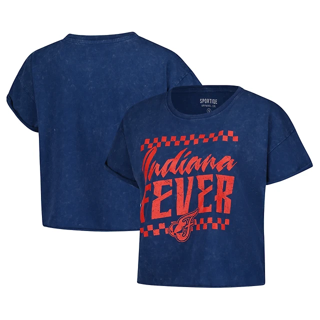 T-shirt court Sportiqe bleu marine pour femme, collection Rock N Roll, délavé minéral Gwen, Indiana Fever