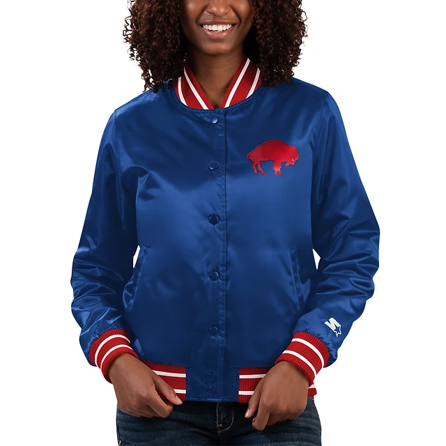 Veste universitaire à boutons-pression en satin Starter Royal Buffalo Bills pour femmes