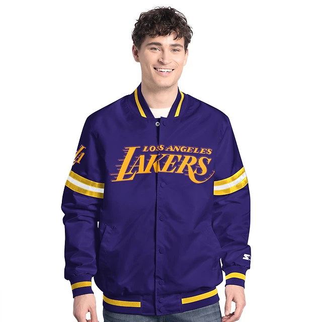 Veste universitaire à boutons-pression Los Angeles Lakers Scout violette/dorée pour homme