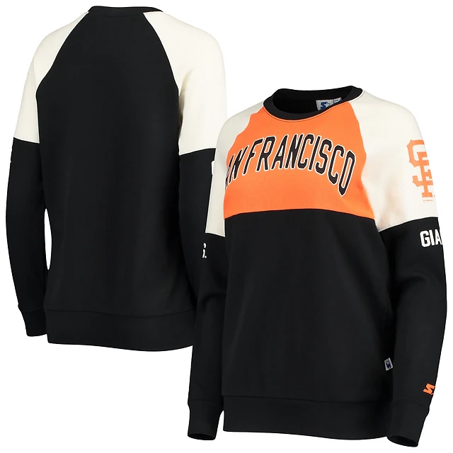 Sweat-shirt Starter noir/orange pour femmes des Giants de San Francisco Baseline Raglan