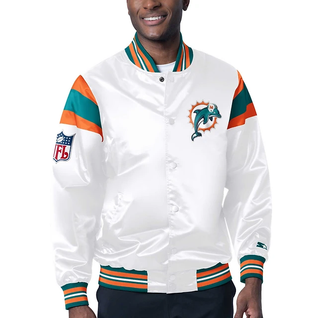 Veste universitaire à bouton-pression en satin Starter White Dallas Cowboys pour hommes