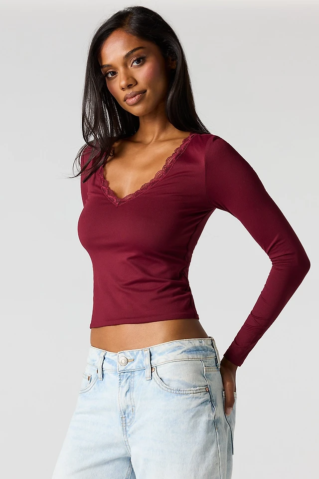 Haut profilé ouvert cintré à manches longues