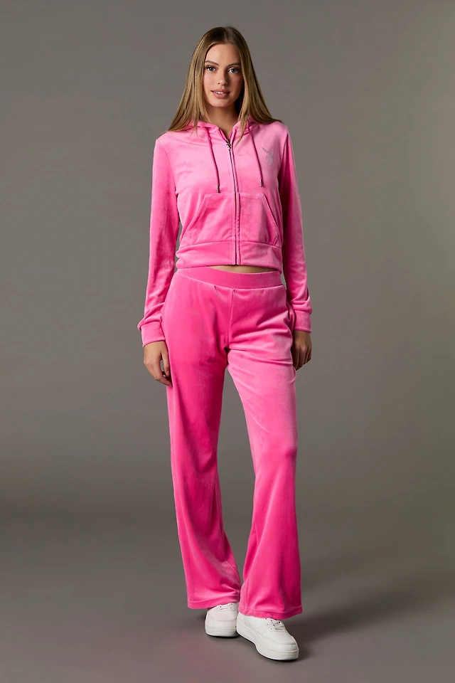 Haut en velours avec motif Playboy embossé orné de pierres du Rhin et fermeture à glissière