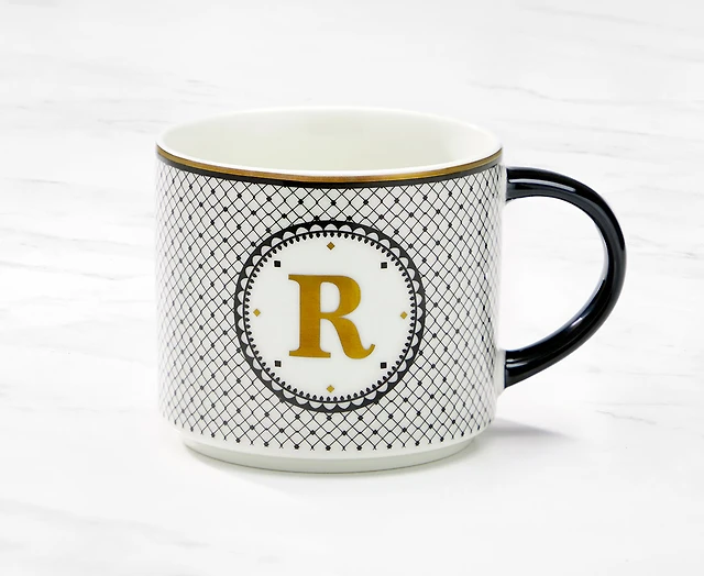 Tasse monogramme avec lettre R, noir et or, 480 ml