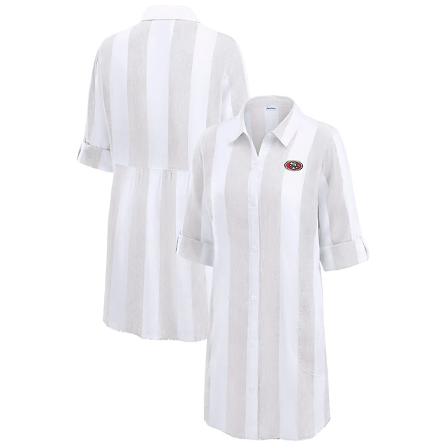 Tunique boutonnée à rayures de rugby pour femme Tommy Bahama Kaki/Blanc San Francisco 49ers