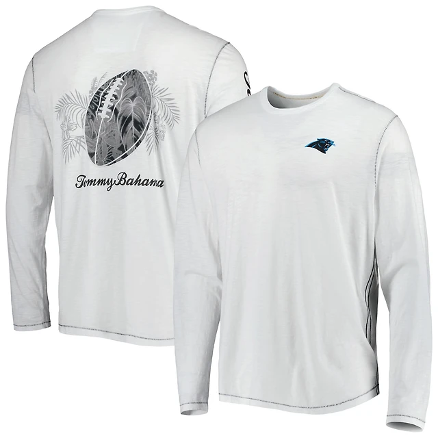 T-shirt à manches longues Tommy Bahama Panthers de la Caroline, blanc, lacets pour homme