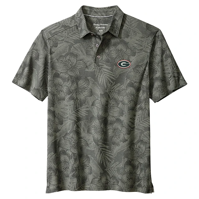 Polo Tommy Bahama gris Georgia Bulldogs Palm Fresco Hibiscus IslandZone® pour homme