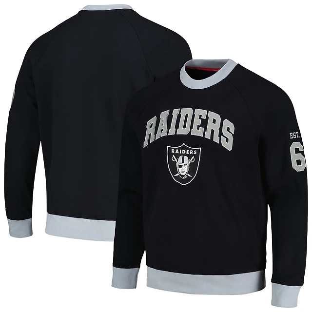 Sweat-shirt Tommy Hilfiger noir Las Vegas Raiders Reese Raglan Tri-Blend pour hommes