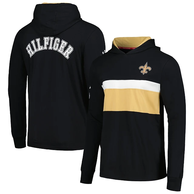 T-shirt à capuche manches longues Tommy Hilfiger noir New Orleans Saints Morgan pour hommes