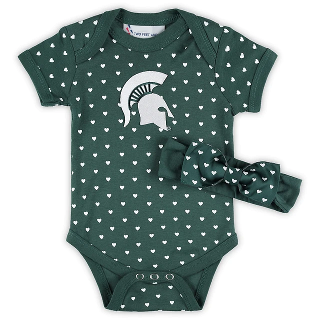 Ensemble body et bandeau vert Michigan State Spartans Hearts pour nouveau-nés nourrissons Two Feet Ahead