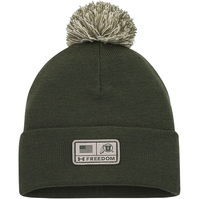 Bonnet en tricot à revers avec pompon vert Utah Utes Freedom Collection d'Under Armour pour hommes