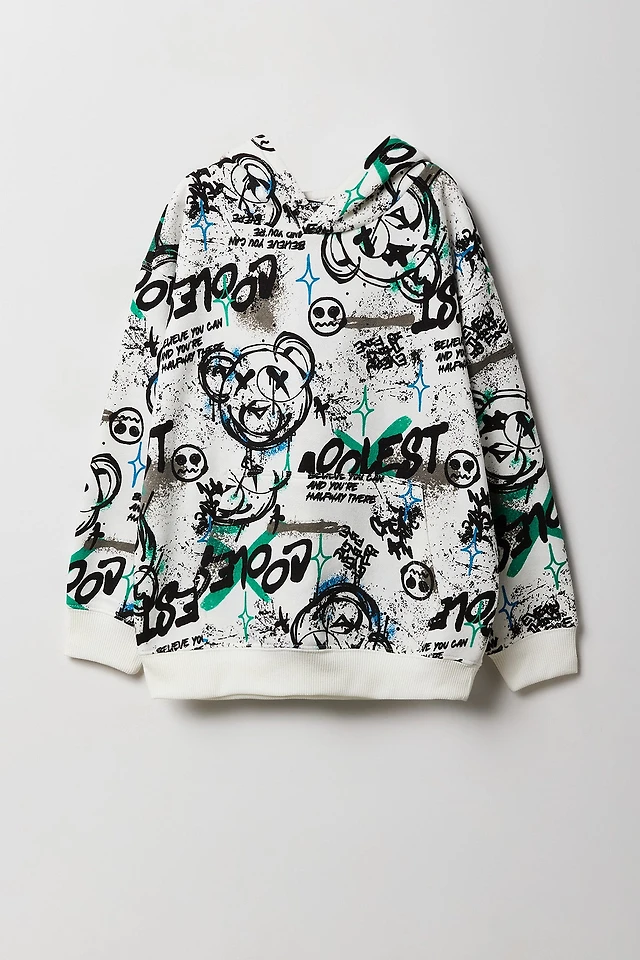 Haut à capuchon en molleton avec imprimé graffitis pour enfant