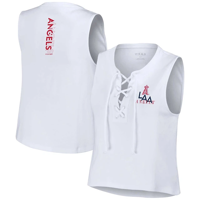 Débardeur WEAR by Erin Andrews Los Angeles Angels blanc à lacets pour femme