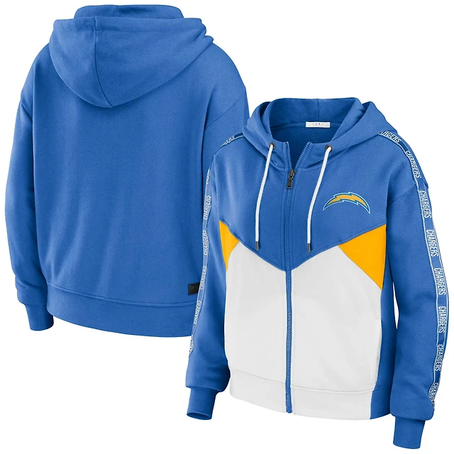 Sweat à capuche zippé court léger et modeste blocs de couleurs bleu poudre/blanc pour femme WEAR by Erin Andrews des Los Angeles Chargers