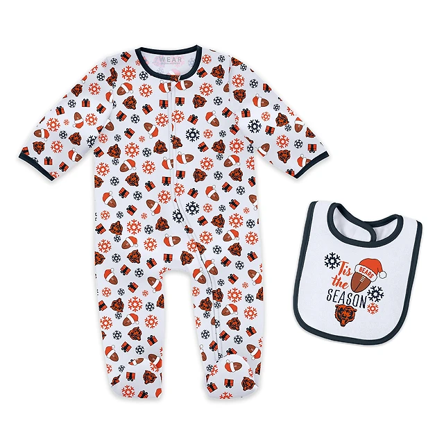 Ensemble pyjama et bavoir pour bébé nouveau-né WEAR par Erin Andrews Chicago Bears Holiday à fermeture éclair