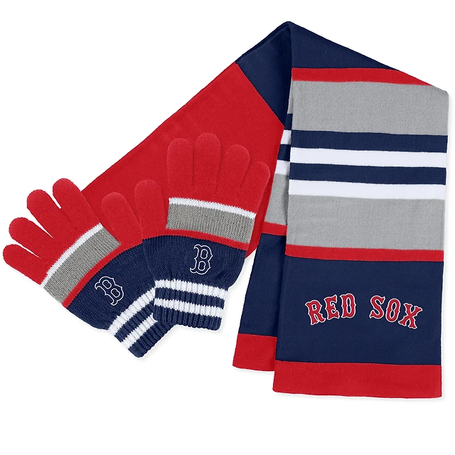 WEAR by Erin Andrews Ensemble gants et écharpe à rayures des Red Sox de Boston pour femmes