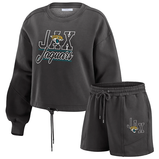 Ensemble de détente pour femme WEAR by Erin Andrews composé d'un t-shirt à manches longues et short en molleton délavé noir Jacksonville Jaguars
