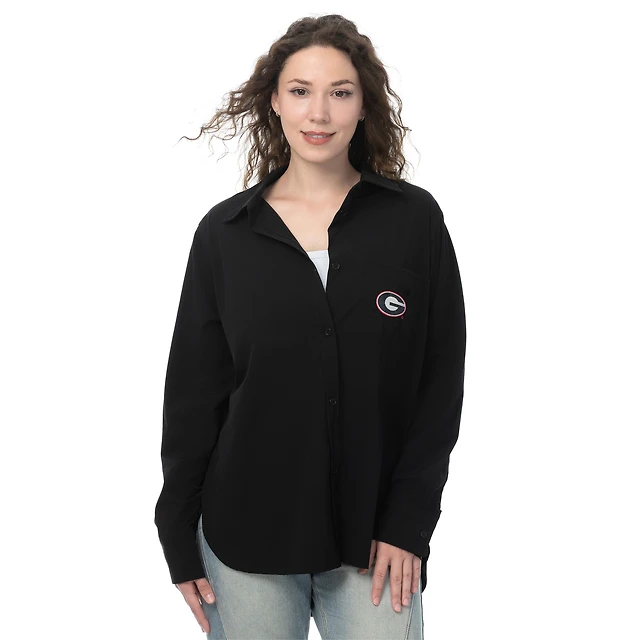 Chemise boutonnée extensible tissée noire ZooZatz pour femme, motif Georgia Bulldogs