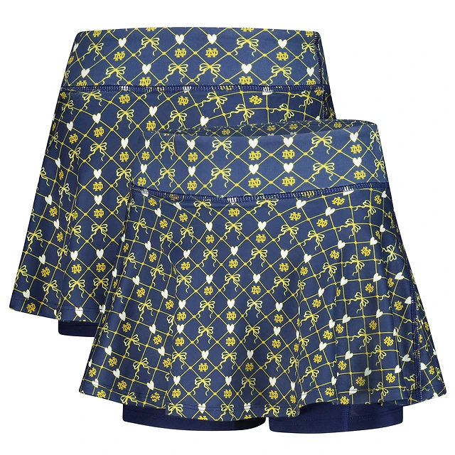 Jupe-short ZooZatz bleu marine pour filles, motif Notre Dame Fighting Irish, avec nœud imprimé sur toute la surface et logo de l'équipe