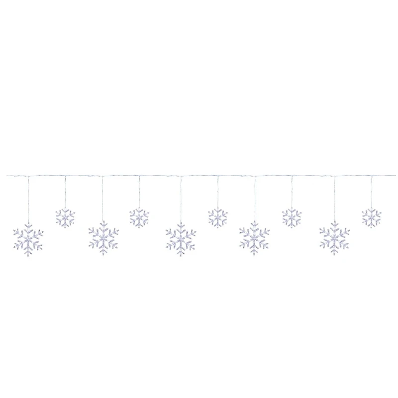 10 FLOCONS LUMINEUX BLANC SCINTILLANT,GRANDEUR VARIE,EN EFFECT GLACON, 150 DEL BLANC PUR, INT/EXT