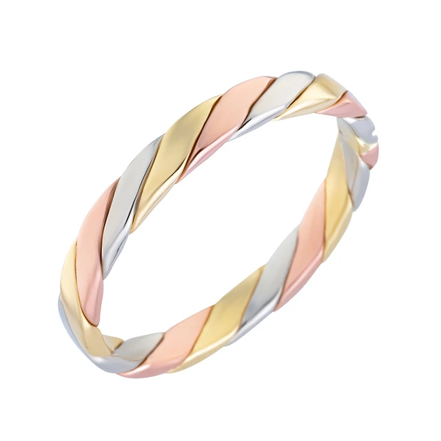 Bague tressée avec trois bandes 10K de diamants. Color: 2 tons | Doucet Latendresse