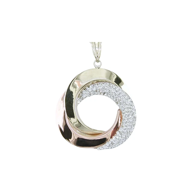 Pendentif en forme de coeur pour femme - 3 tones Or 10K & zircon cubique - chaine 18