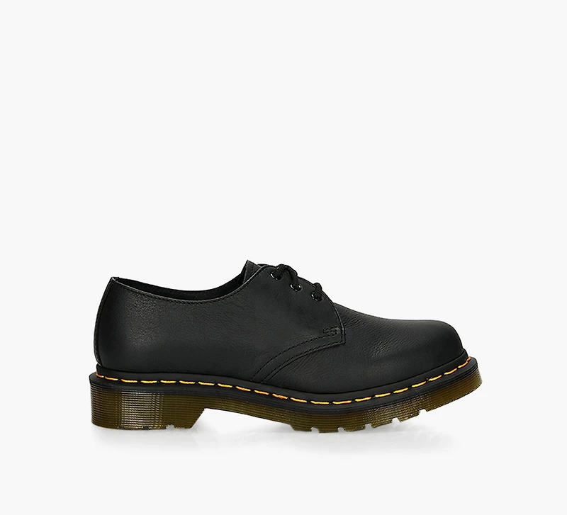 Derbys en cuir poli à trois œillets. Surpiqûre jaune emblématique, et semelle en caoutchouc dotée de la technologie Airwair™. Fermoir à lacets ton sur ton. Ferrures noires polies.