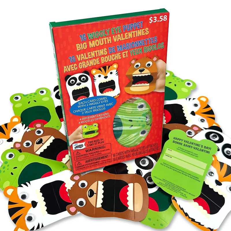 16 Valentins de marionnettes à grande bouche et aux yeux rigolos