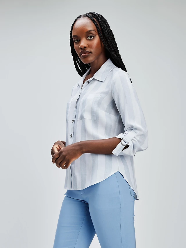 Women's Woven Button Down Shirt With A Front Pin-Tuck Detailing | M