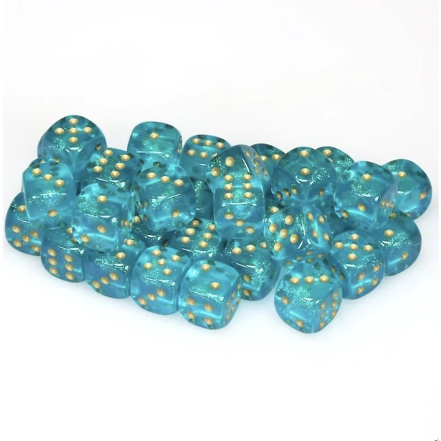 36 dés 6 12mm Borealis Luminary - Sarcelle avec picots dorés