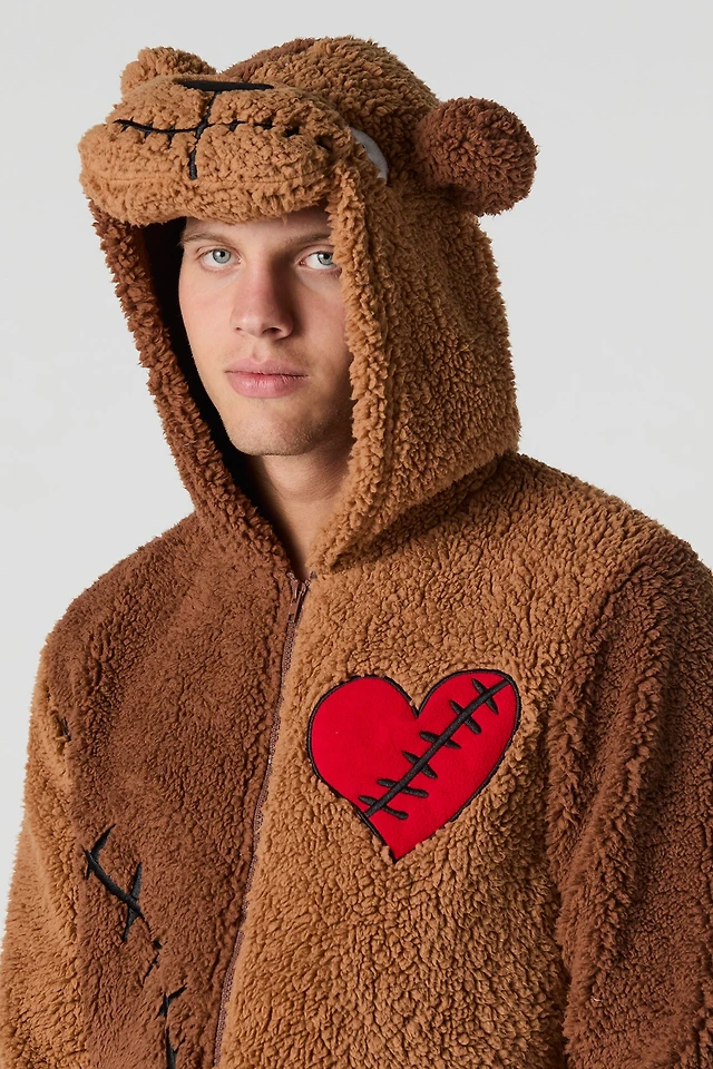 Combinaison en sherpa à broderie Heartbreak Bear 3D