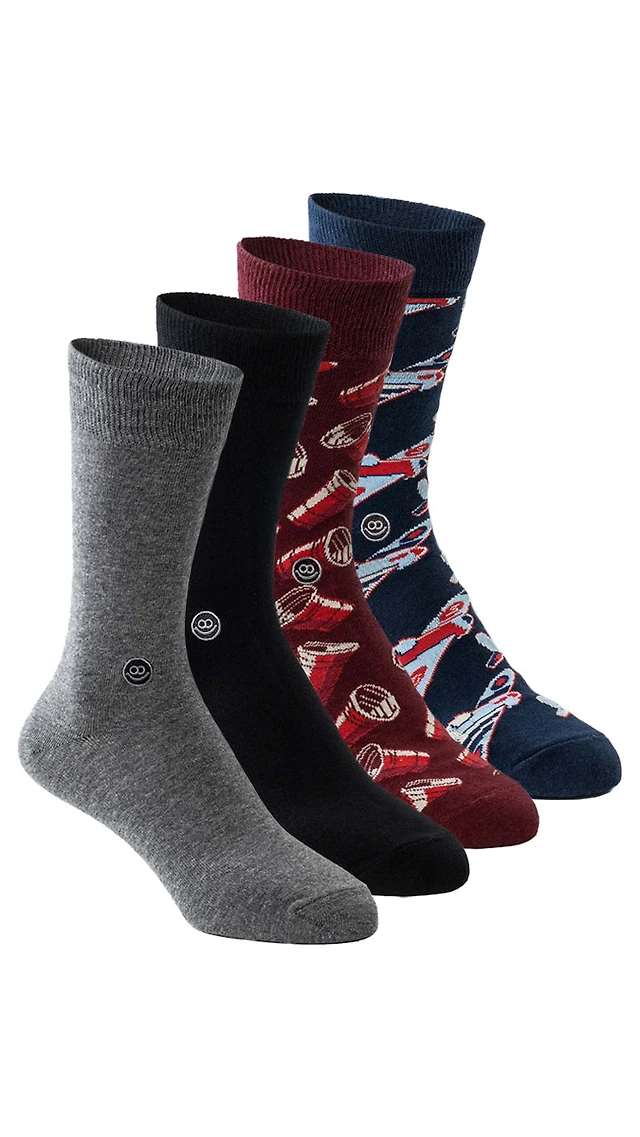 4 paires de bas mi-mollet: Lignées bleu et bordeaux