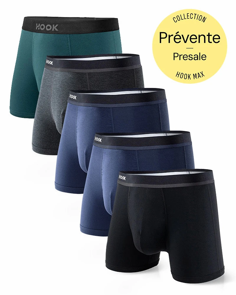 Collection Max de Hook Underwear : l’ultime confortFabriqué en Modal ultra-doux, le boxer Hook Max est tout simplement le “top”. Respirant, léger et résistant, son confort est exceptionnel!