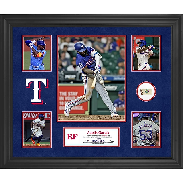 Adolis Garcia Texas Rangers Framed 5-Photo Collage with a Piece of Game-Used Ball
