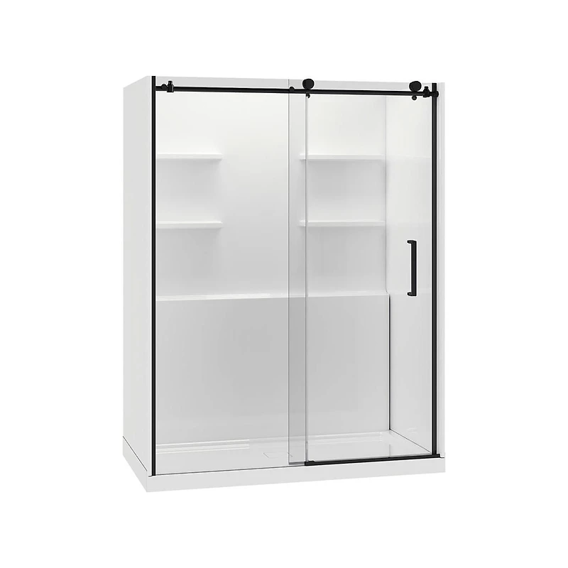 Les panneaux de verre trempés cristallins apportent un air de sophistication et d’ouverture à votre salle de bain, permettant à la lumière naturelle d’en cascade. Notre cadre en aluminium chromé ajoute un style intemporel, tandis que les murs de douche en acrylique, avec des étagères intégrées, transforment votre douche en une oasis d’organisation et de propreté.