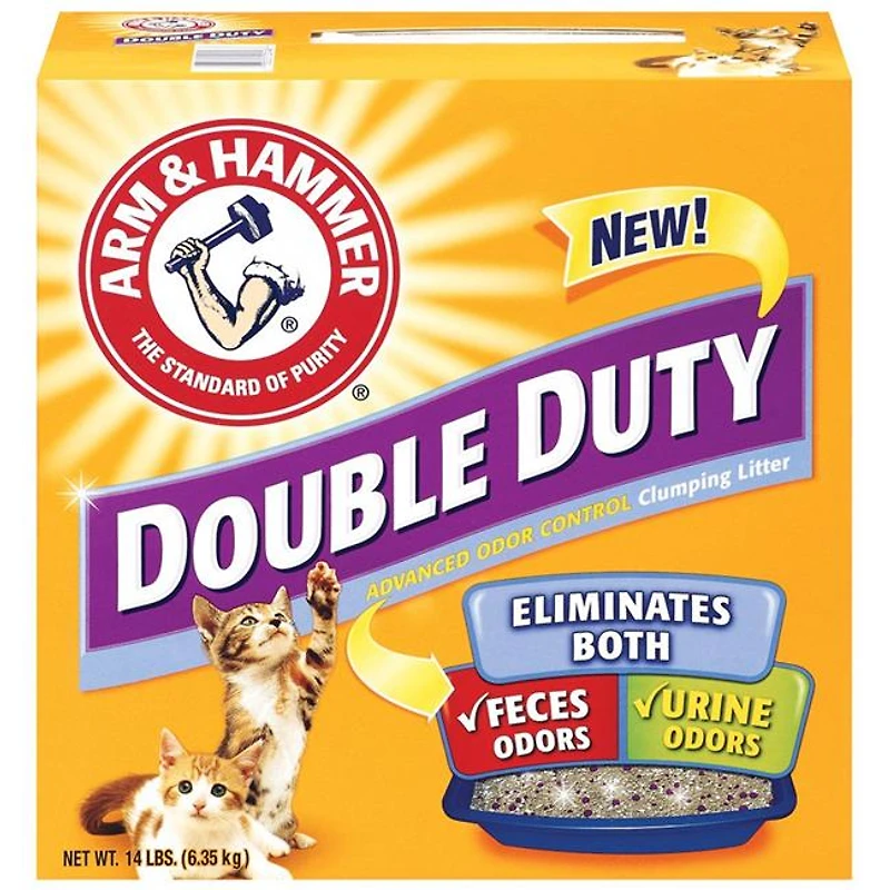 Litière Arm & hammer. nouvelle Arm & hammer double devoir agglutinant litière élimine. sa formule révolutionnaire détruit instantanément l'urine et les odeurs de fèces, et aide à garder votre maison fraîche et propre. Un parfum frais rafraîchit la litière chaque fois que votre chat utilise la litièreCaractéristiques. Les deux types d'odeurs pour un contrôle avancé des odeurs. 99% sans poussière et faible suivi Spécifications. Dimensions: 10 pieds' L x 4 pieds' L x 10.4 pieds' D. Poids: 14 lbs- SKU: NDPS8417