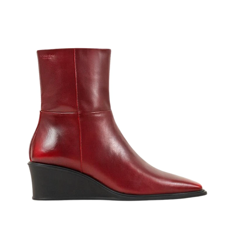 Aino, ce sont les bottines contemporaines à porter au quotidien. Le modèle est confectionné en cuir noir avec une forme pointue et une fermeture zippée sur le côté. Les talons compensés élégants mesurent 50 mm.