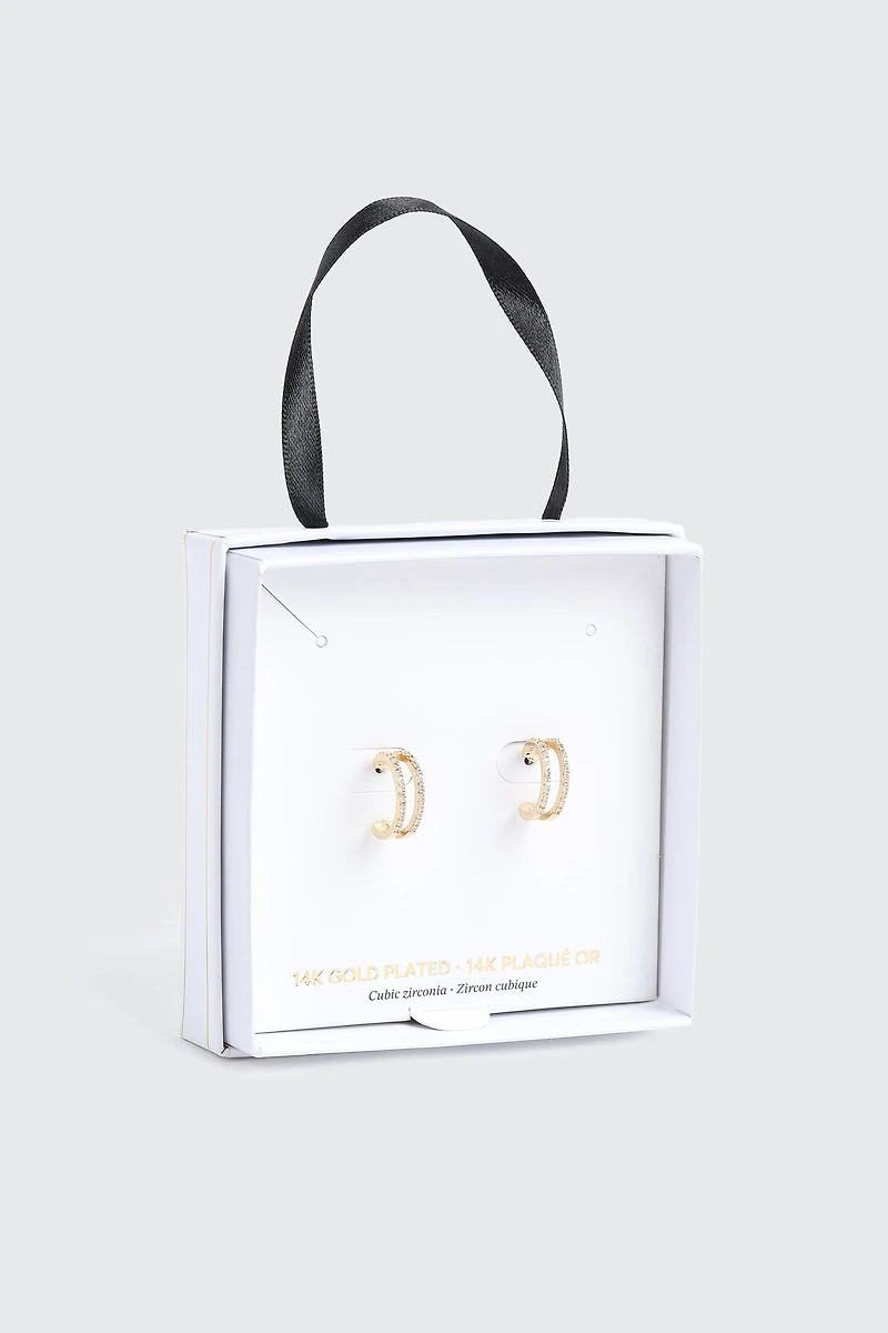 Paire d'anneaux d'oreilles dans une boîte-cadeau.