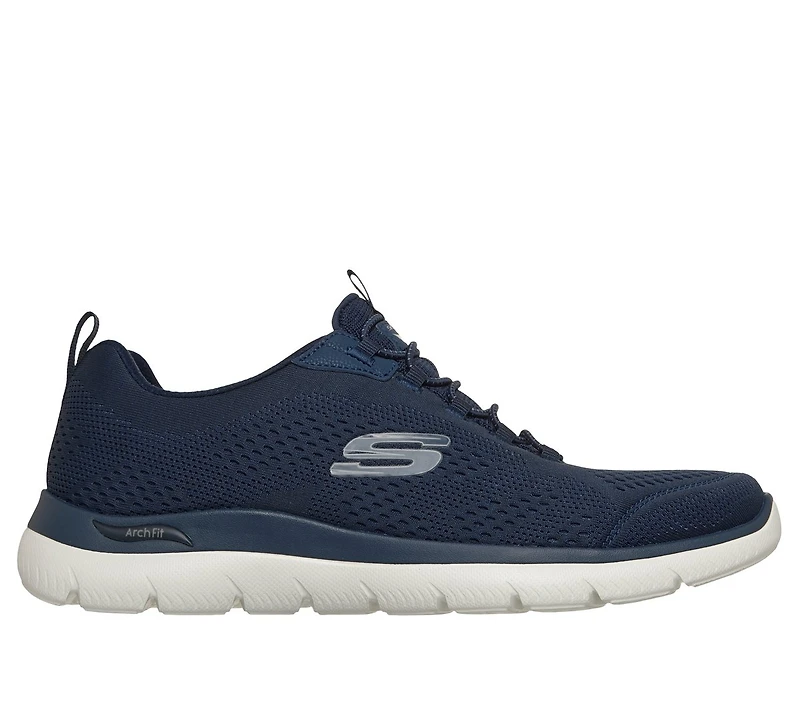 Experience peak comfort and support with Skechers Arch Fit® Summits - Ganarte. This casual vegan style has been granted the APMA Seal of Acceptance and features an engineered mesh upper with fixed stretch laces, and an air-cooled Skechers Arch Fit® insole.