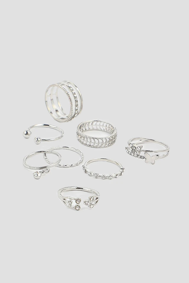 Ardene 10-Pack Stone Thin Rings in Silver | Size